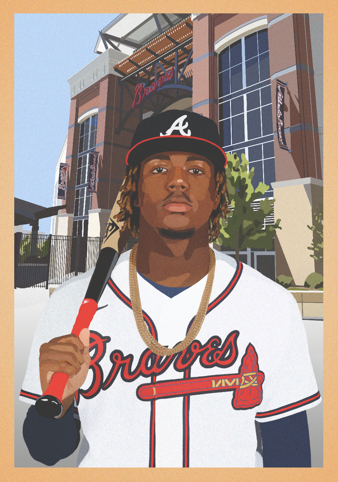 Custom player and background illustrations for the 2021 Atlanta All-Star Game visual style guide.