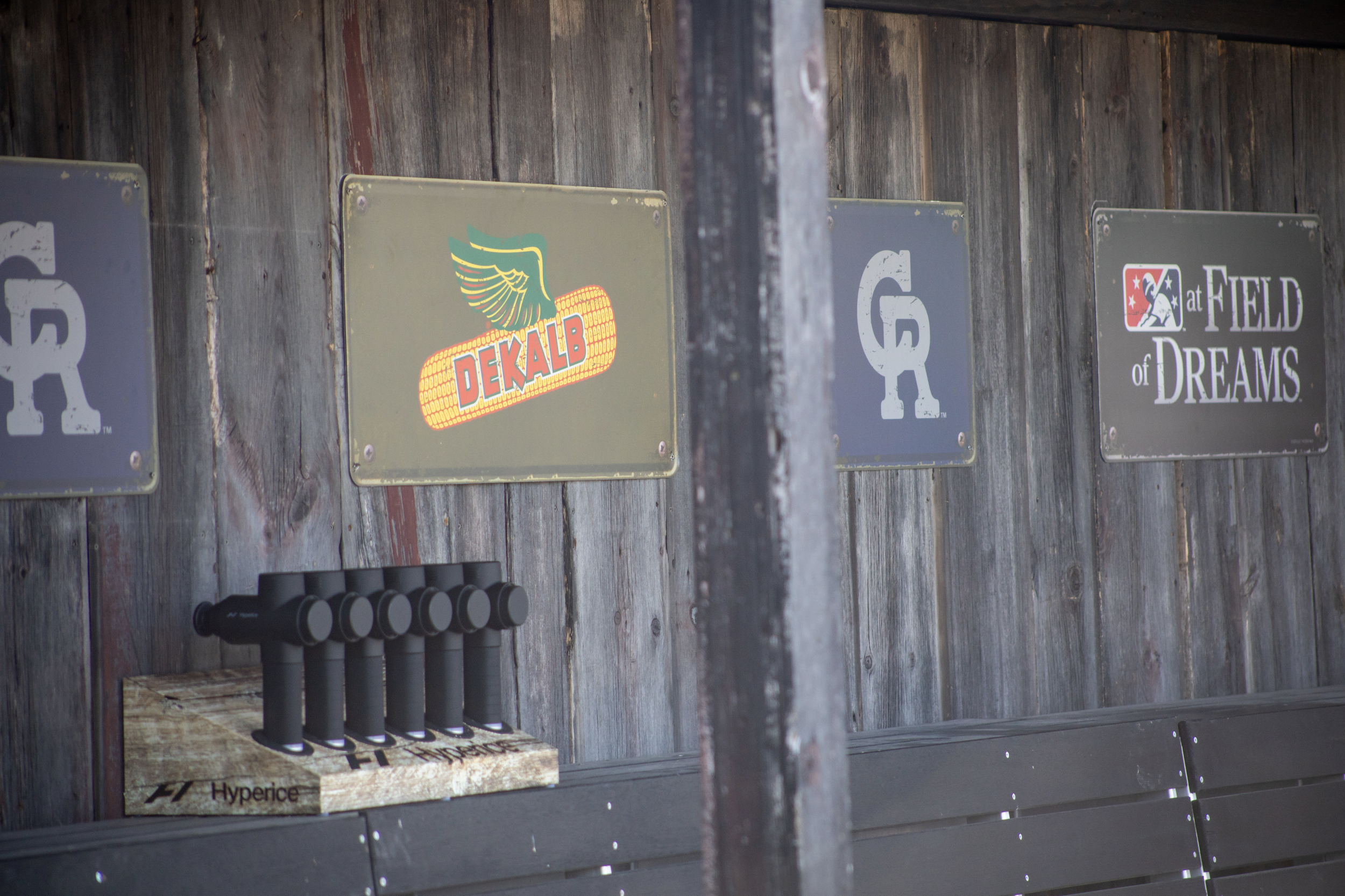Photographed individual barn wood panels to create and print custom pattern for the baseline and outfield wall padding. This closely mimicked the actual, physical barn wood used for the dugouts, manual scoreboard and press box structures.