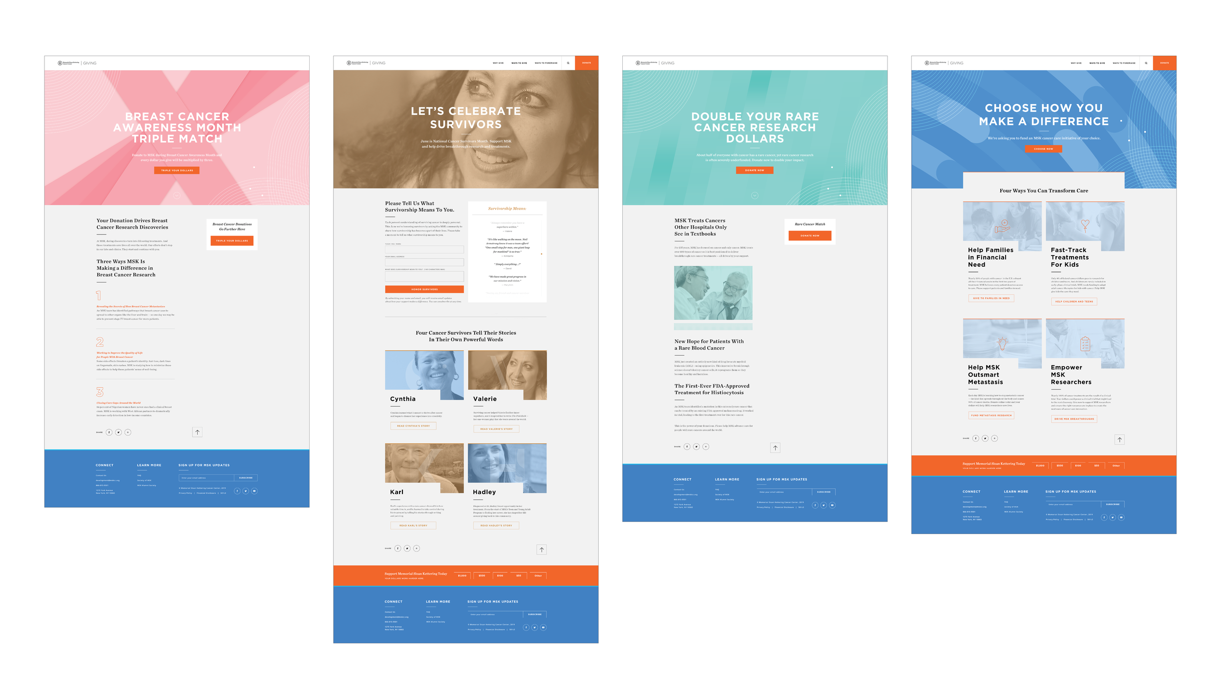 The brand guidelines continuously evolved and adapted to various fundraising tactics. Campaigns consisted of initiatives such as rare cancer, survivorship, pediatrics, breast cancer, and end-of-year.